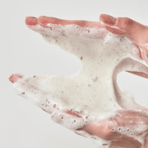 2. Dispense 2–3 pumps of cleanser into wet hands.