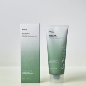 Anua’s Heartleaf Quercetinol Pore Deep Cleansing Foam is a gentle yet effective facial cleanser designed to deeply purify pores, exfoliate dead skin cells, and hydrate the skin. Infused with Heartleaf extract and Quercetin, this foaming cleanser is ideal for oily, combination, and acne-prone skin types.